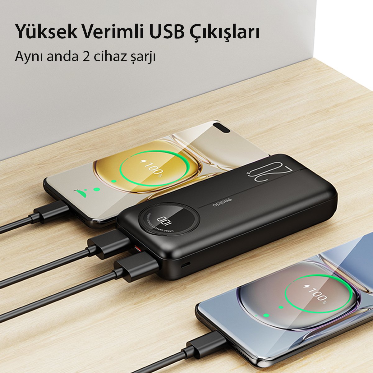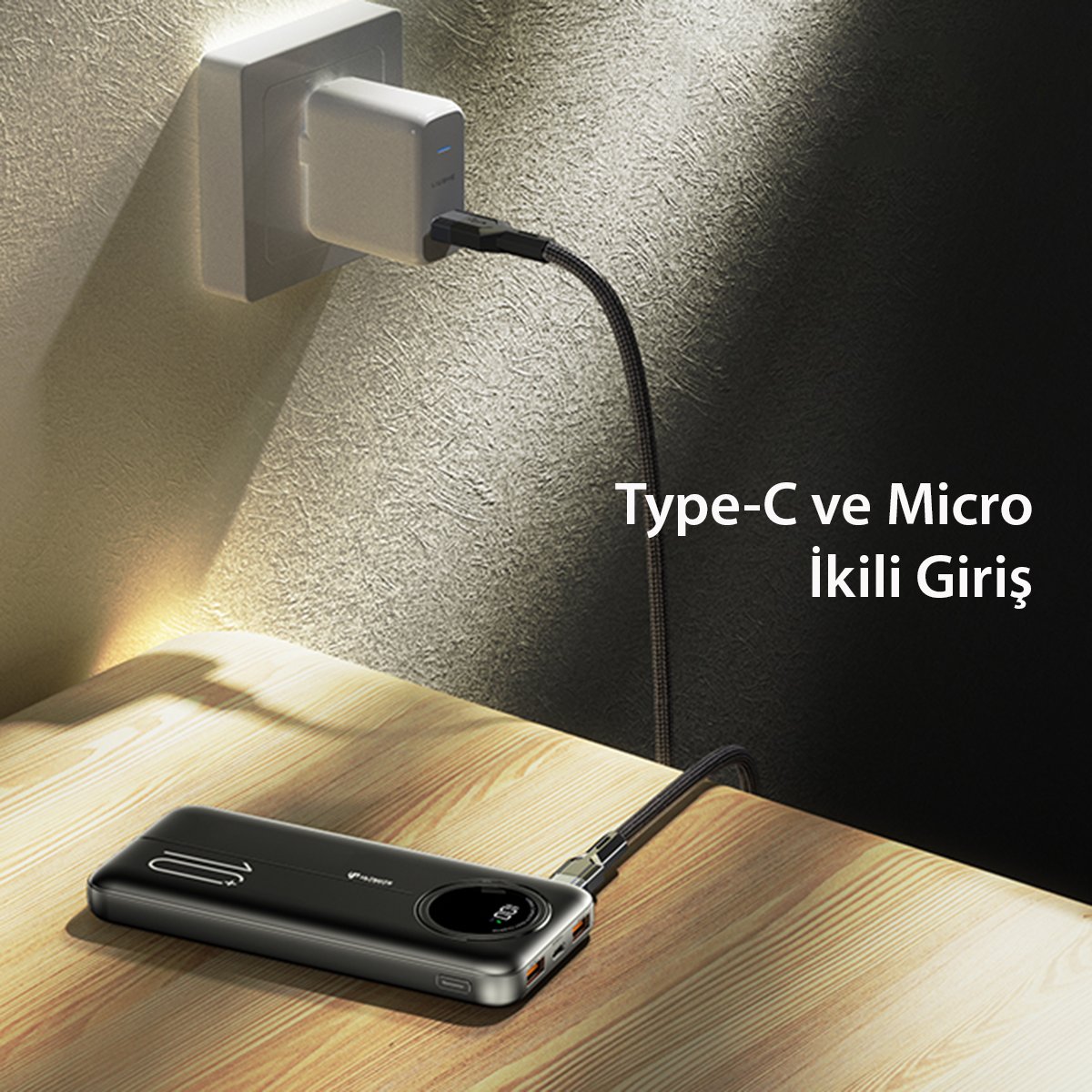 Cihazın 2 adet USB çıkış portu bulunmaktadır, bu sayede iki farklı cihaz aynı anda şarj edilebilir. Ayrıca, cihazın Type-C ve Micro Şarj Giriş Portu özellikleri sayesinde farklı cihazlara uyumlu olarak kullanılabilir.